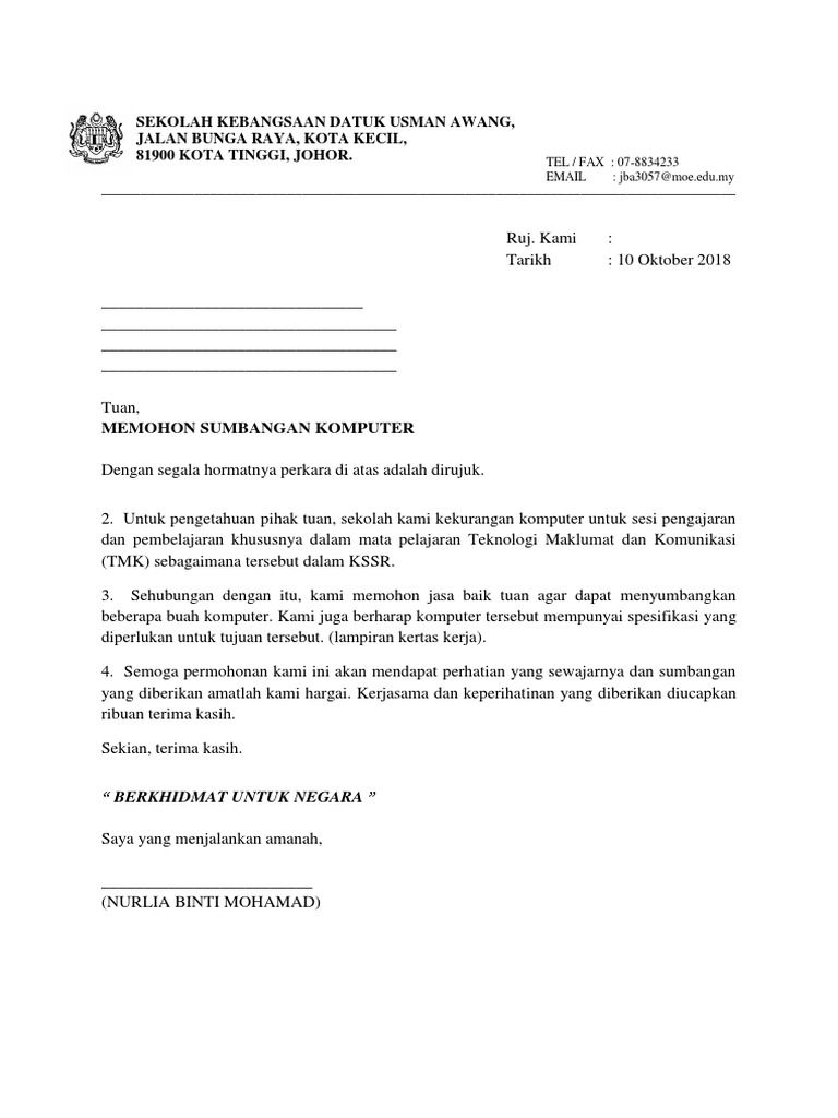 1 Surat Mohon Sumbangan Komputer