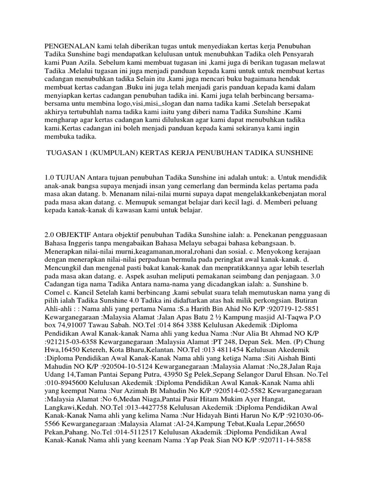 Kertas Kerja Penubuhan Tadika Pdf Document