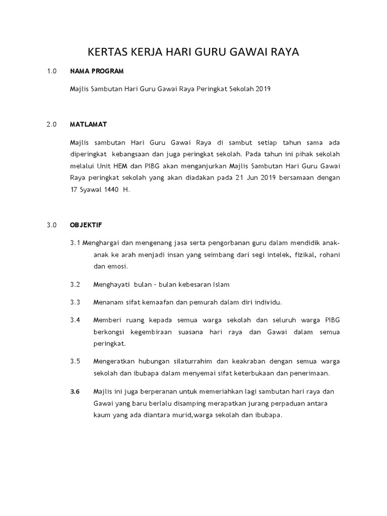 Kertas Kerja Sambutan Hari Guru 2019 Pages 1 9 Text Version Anyflip