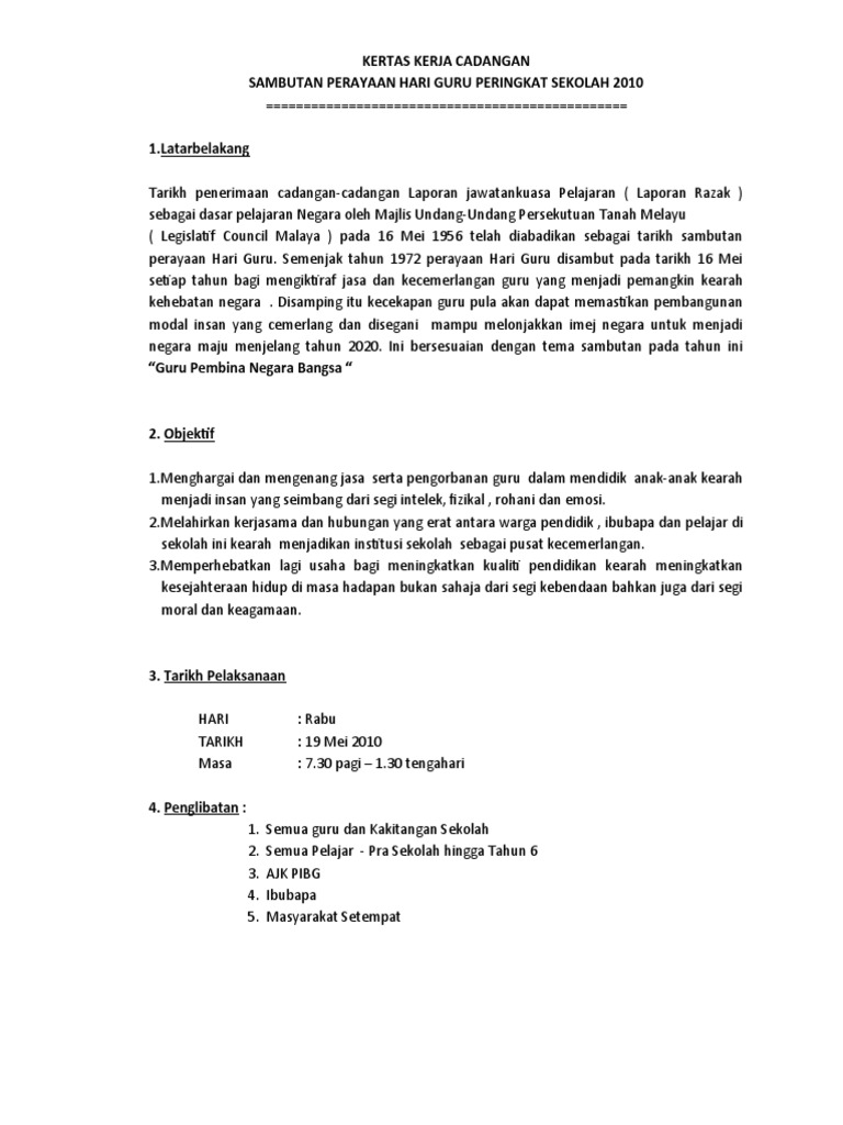 Kertas Cadangan Majlis Sambutan Hari Guru Tahun 2020 Pages 1 6 Text Version Anyflip