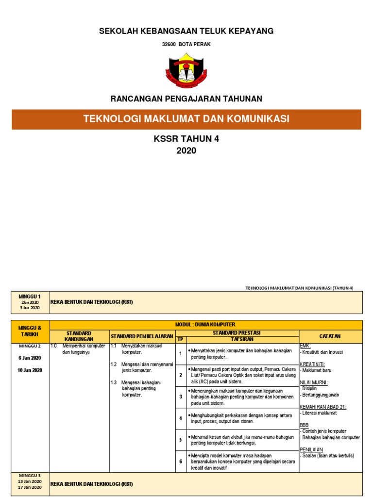 Template Pelaporan Pbd 2020 Tahun 1 2 3 Dan 4 Paling Lengkap