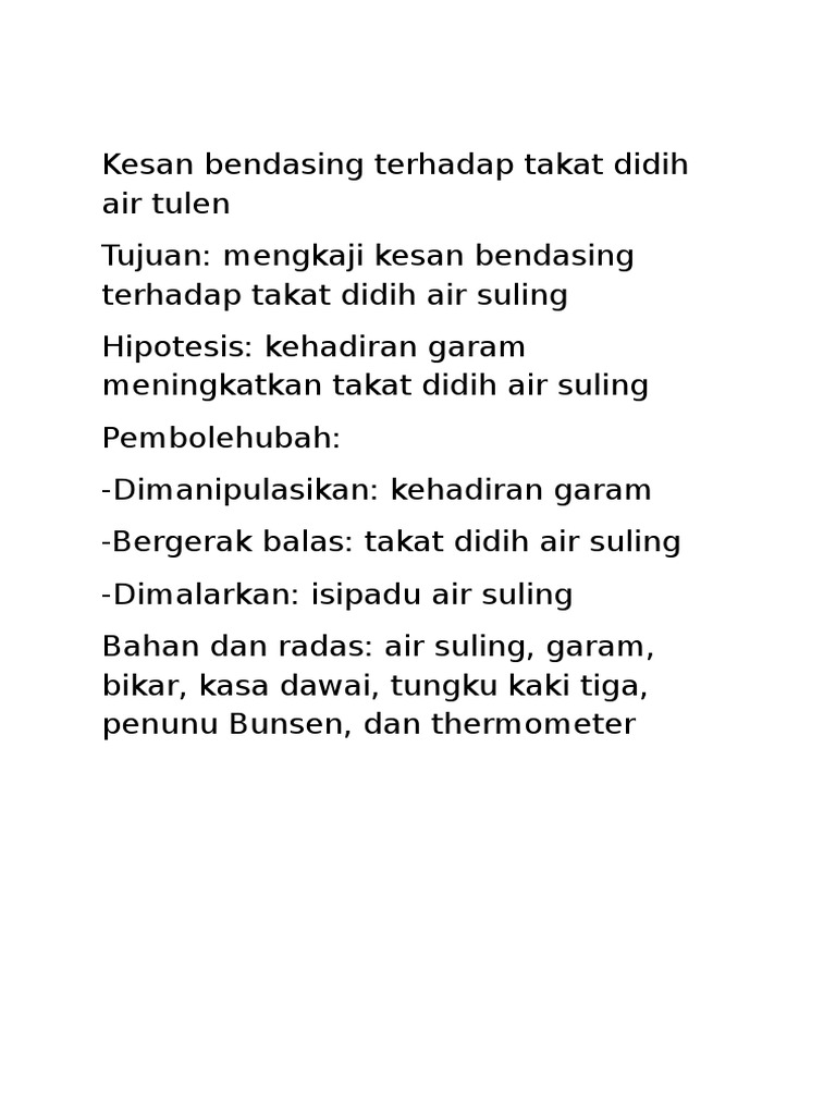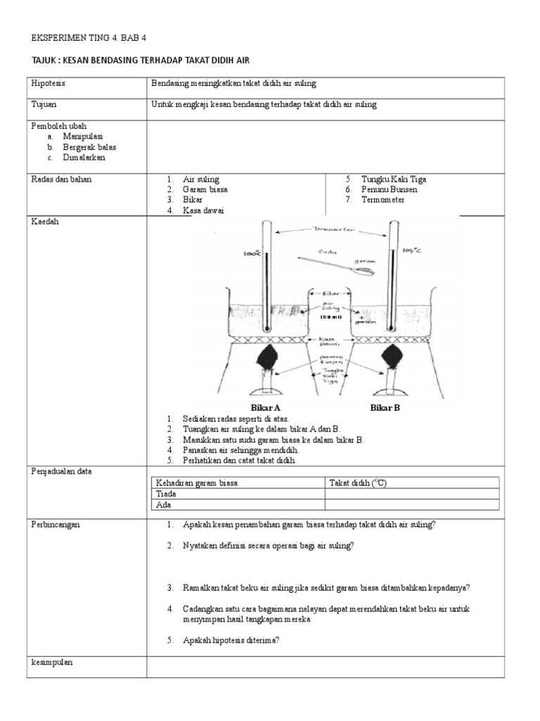 Eksperimen Peka 1 Kesan Bendasing Terhadap Takat Didih Air Tulen Pdf Document