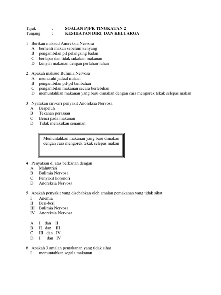 Pendidikan Jasmani Dan Kesihatan Kesihatan Diri Dan Keluarga
