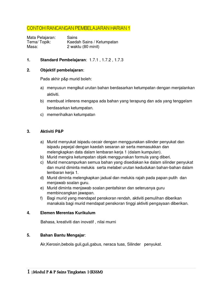 Ketumpatan Sains Tingkatan 1 Lessons Tes Teach