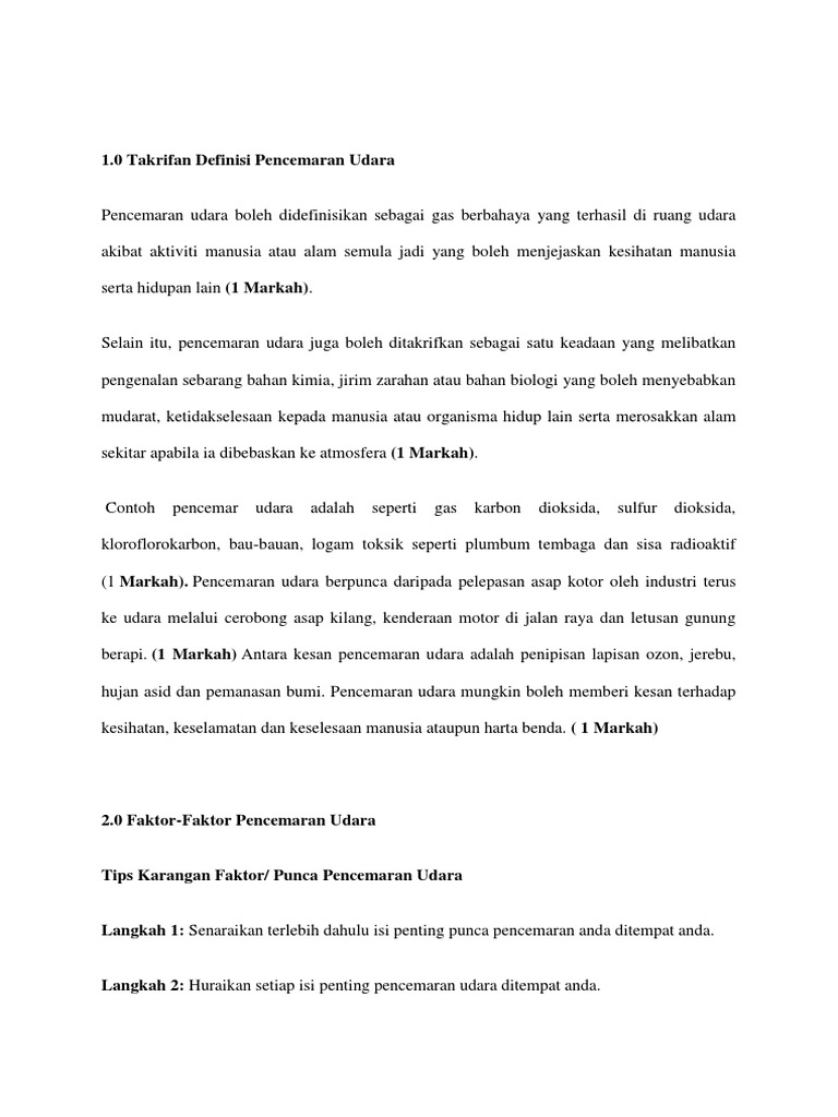Badukan Com Faktor Punca Pencemaran Udara Contoh Tugasan Geografi Pt3
