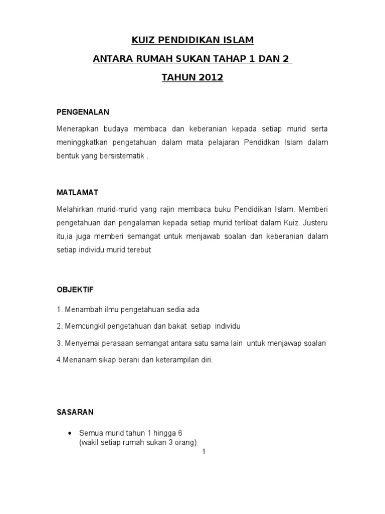 Kuiz Pendidikan Islam Antara Rumah Sukan Tahap 1 Dan 2 Tahun 2012