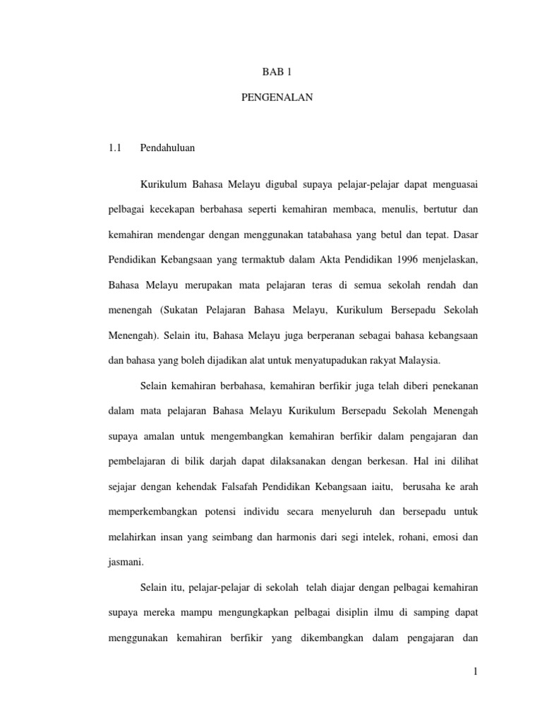 Mengajar Kemahiran Berfikir Dalam Mata Pelajaran Bahasa Melayu Di Sek