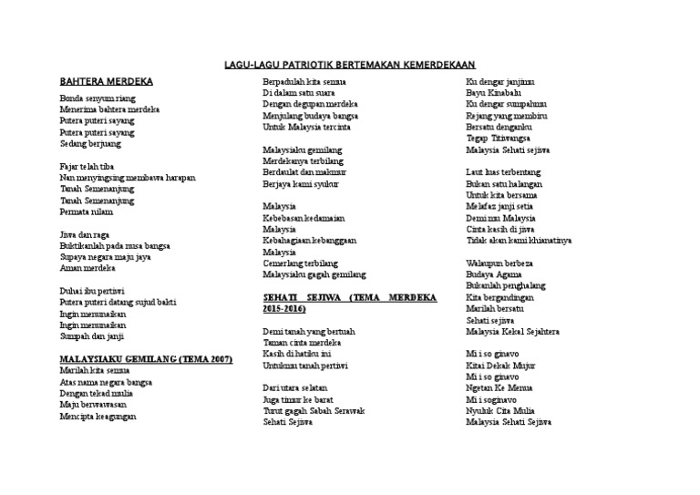 S E H A T I S E J I W A Medley Lyrics And Music By Gabungan Lagu Lagu Patriotik Arranged By Kamarulsnm