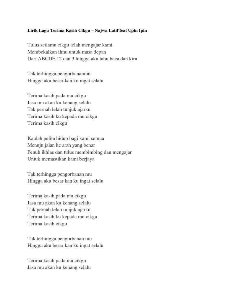 Doc Lirik Lagu Terima Kasih Cikgu Sauadah Shafie Academia Edu