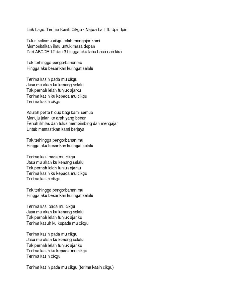 Terima Kasih Cikgu Lyrics Upin Ipin Najwa Latif Kkbox