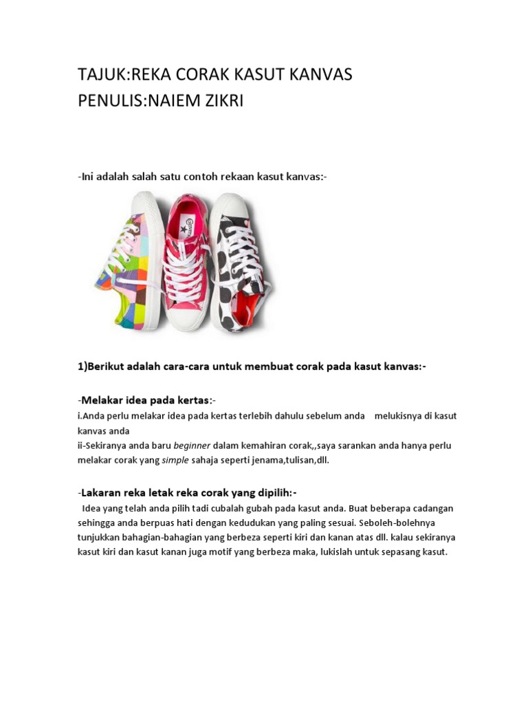 Tajuk Reka Corak Kasut Kanvas Penulis Naiem Zikri Ini Adalah Salah Satu Contoh Rekaan Kasut Kanvas