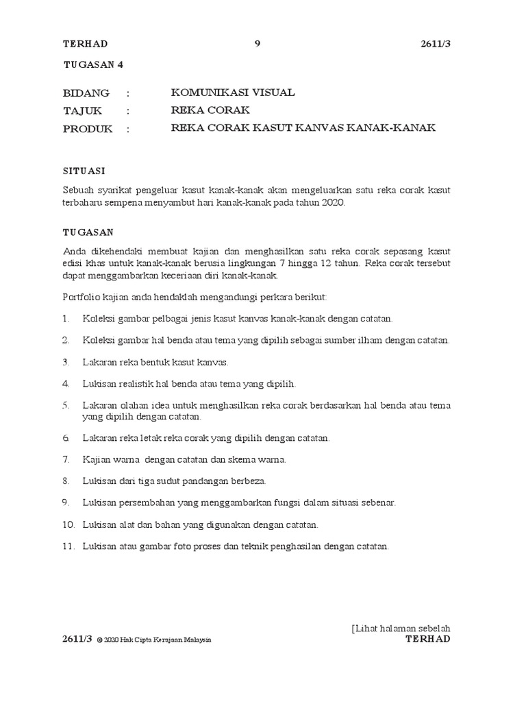 Sijil Pelajaran Malaysia 3 Pendidikan Seni Visual Kajian Rekaan Seni Visual Kerja Kursus Kertas 3 Februari Julai Pdf Download Gratis