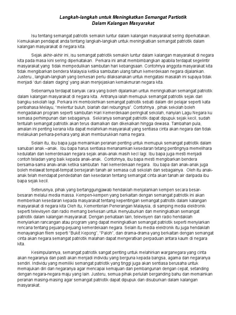 Doc Usaha Usaha Untuk Meningkatkan Semangat Patriotik Dalam Kalangan Masyarakat Di Negara Kita Ken Ge Academia Edu