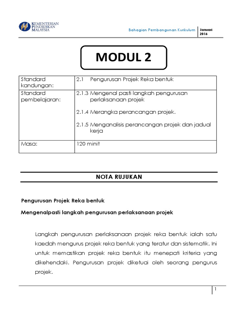 Kertas Kerja Pengurusan Projek Reka Bentuk Tingkatan 1