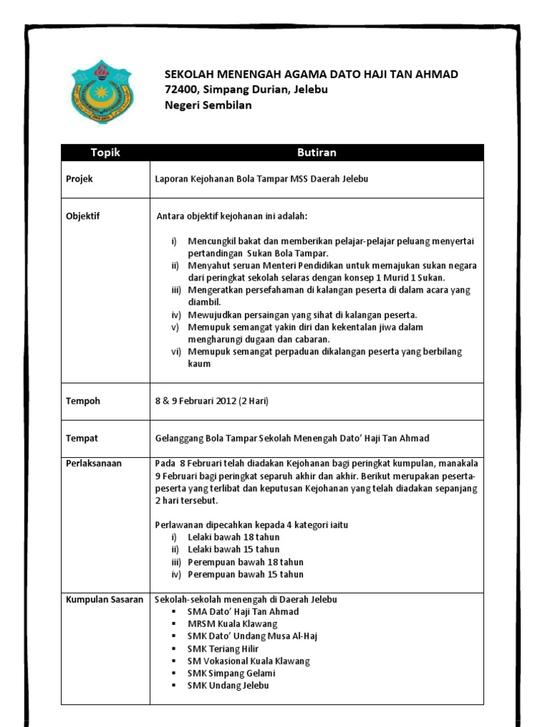 Doc Laporan Kejohanan Olahraga Kali Ke 34 Docx Mem Mm Academia Edu