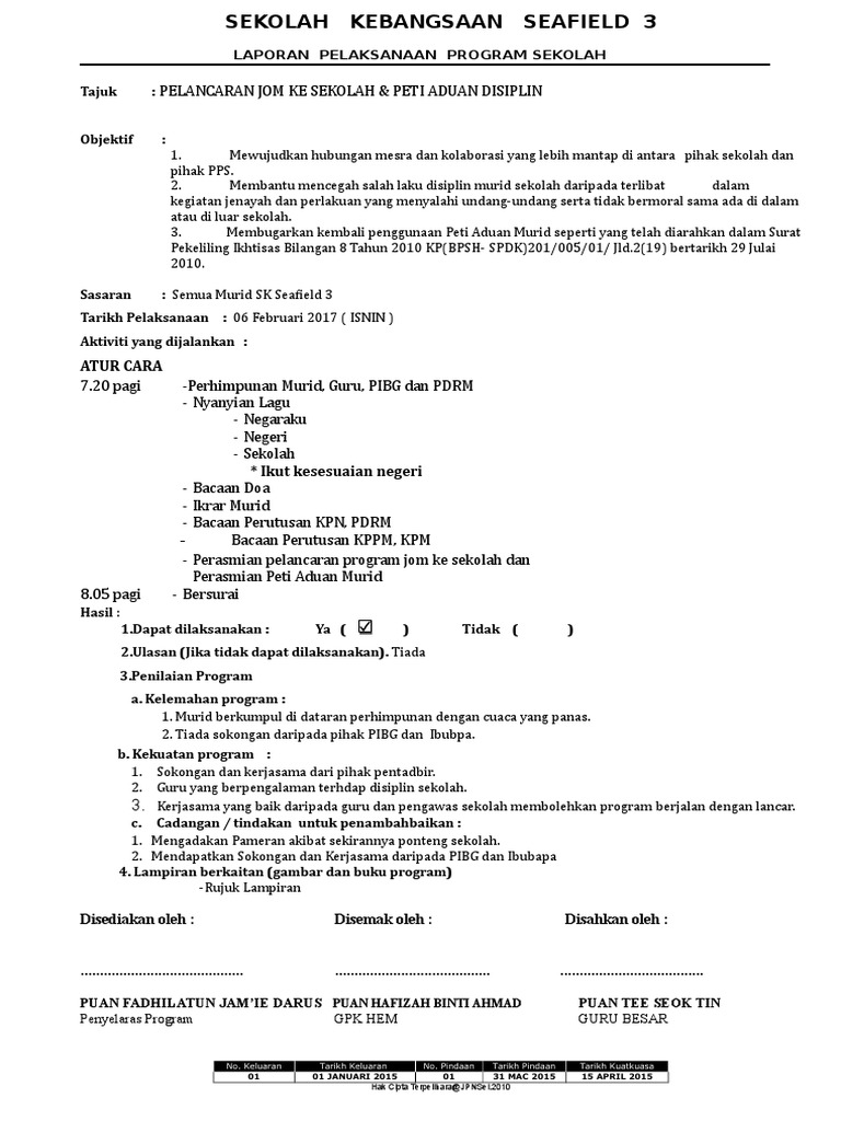 Laporan Program Jom Ke Sekolah Contoh