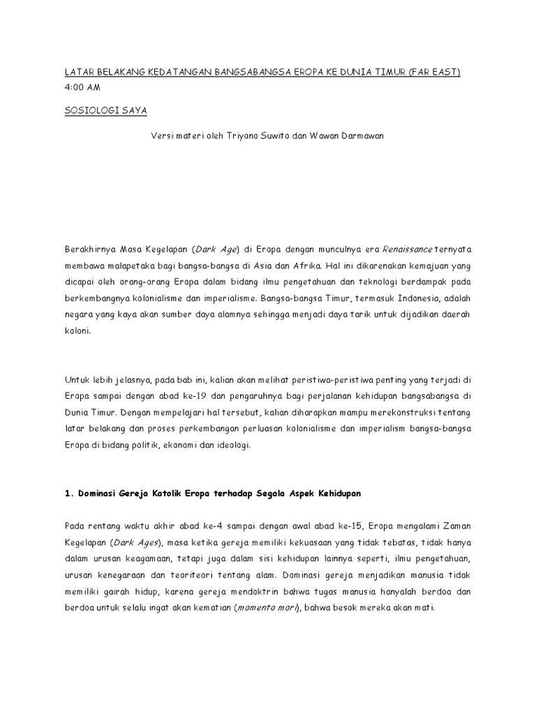 Doc Latar Belakang Kedatangan Bangsa Barat Ke Indonesia Smp Kls 8 Denalove Christian Academia Edu