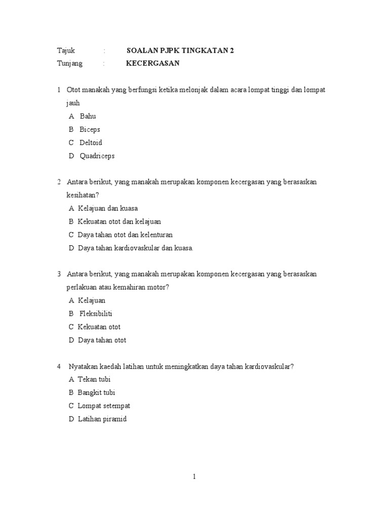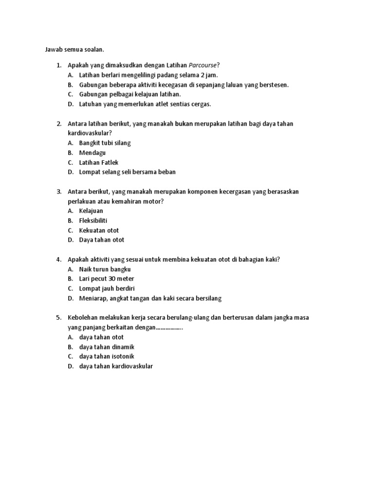 Pendidikan Jasmani Dan Kesihatan Daya Tahan Otot