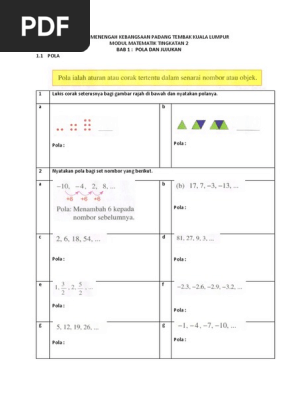 Soalan Latihan Matematik Tingkatan 2 Pola Dan Jujukan Terengganu W