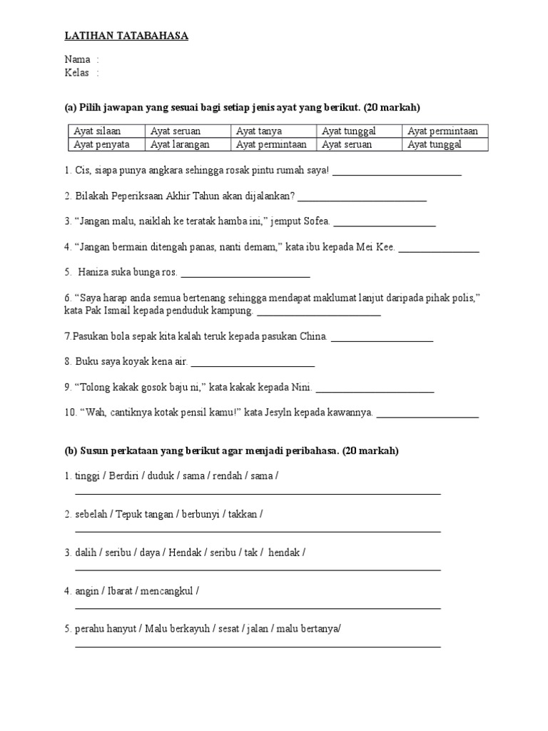 Latihan Tatabahasa Jenis Ayat Dan Membina Ayat Tingkatan 4 Docx