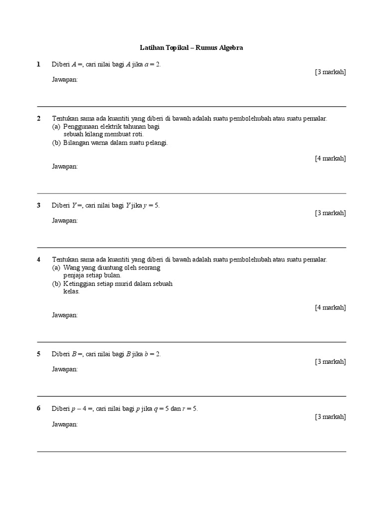 Latihan Topikal Rumus Algebra