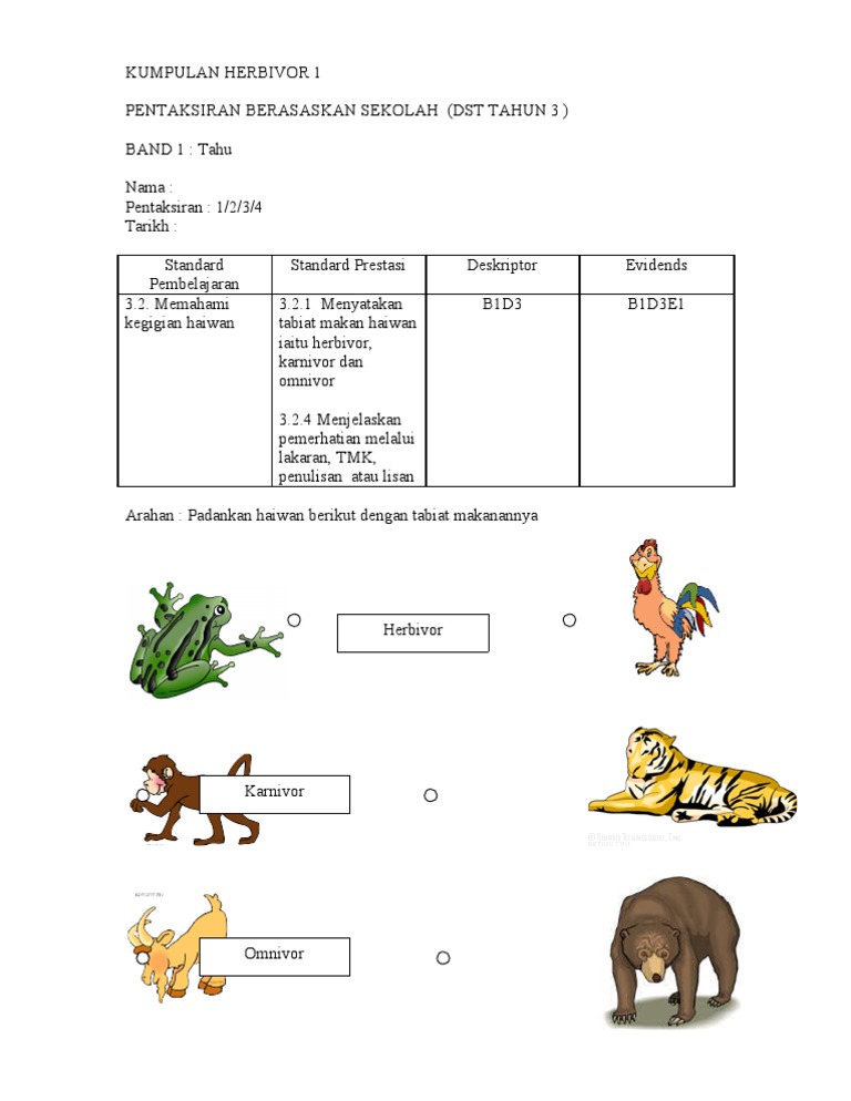 Dst Tahun 3 Latihan Tabiat Pemakanan Haiwan
