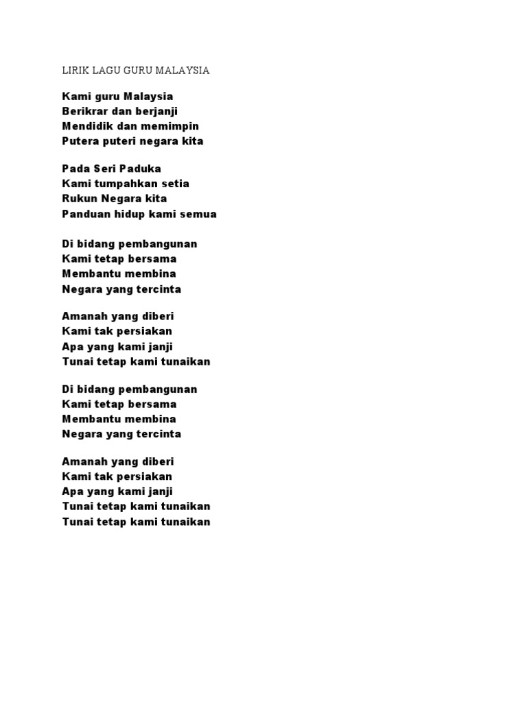 Lirik Lagu Kami Guru Malaysia Youtube