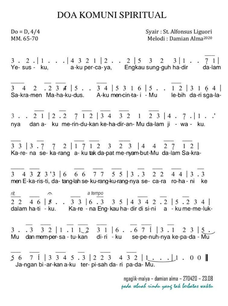 Video Lirik Not Lagu Doa Komuni Spiritual Komuni Batin 2020 Gereja St Ambrosius