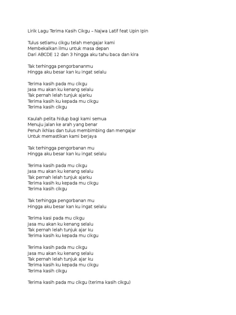 Terima Kasih Cikgu Lyrics Upin Ipin Najwa Latif Kkbox