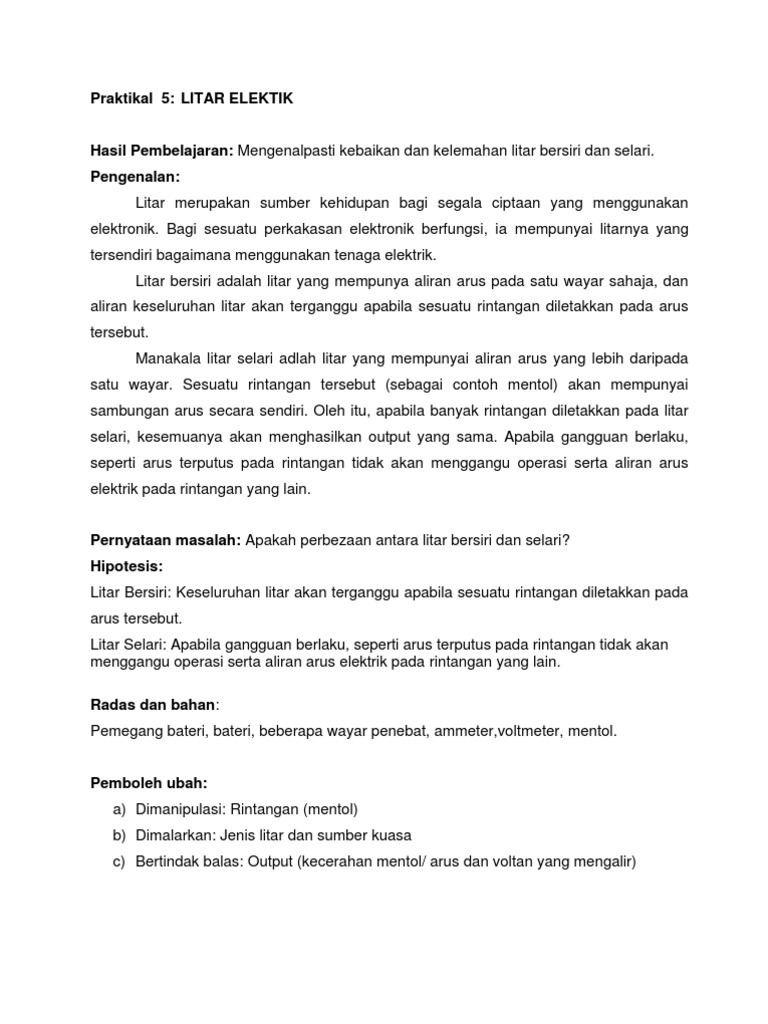 Lembaran Kerja C Tahun 5 Litar Selari Dan Bersiri Eksperimen