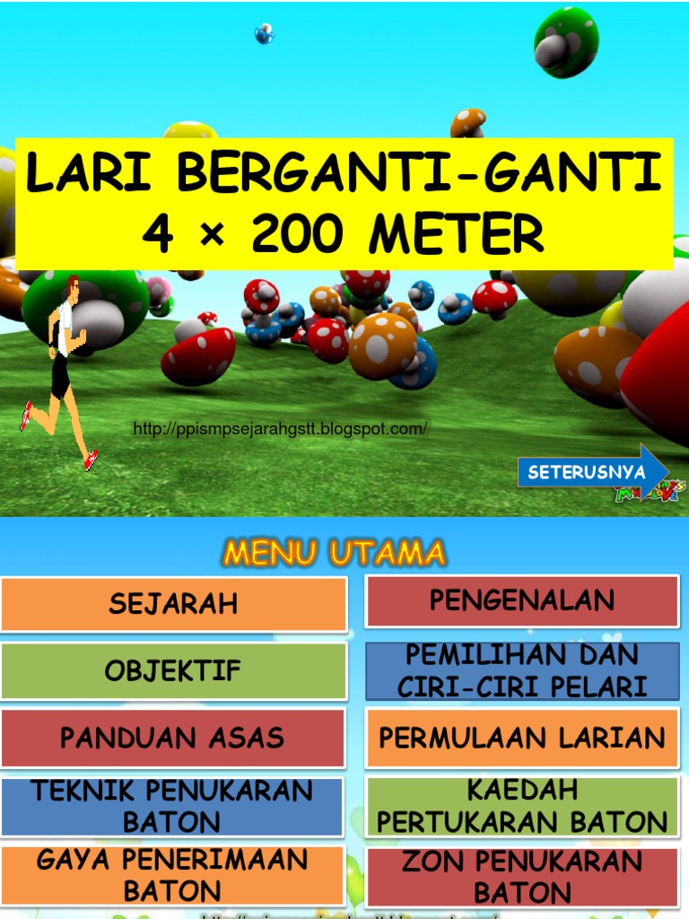 Isi kandungan 25 30 perlumbaan lari berganti ganti 23 24 panduan mengatur pelari pelari untuk perlumbaan 19 22 latihan statik 18 latihan ansur maju penukaran baton 15 17 zon penukaran baton 6 14 gaya dan teknik penukaran baton 4 difinisi lari berganti ganti slide tajuk. Acara lari 4x100 meter ini melibatkan kesemua komponen kecergasan fizikal iaitu kepantasan kekuatan dan daya tahan otot daya tahan kardiovaskular kuasa. Contextual translation of lumba lari berganti from malay into arabic.