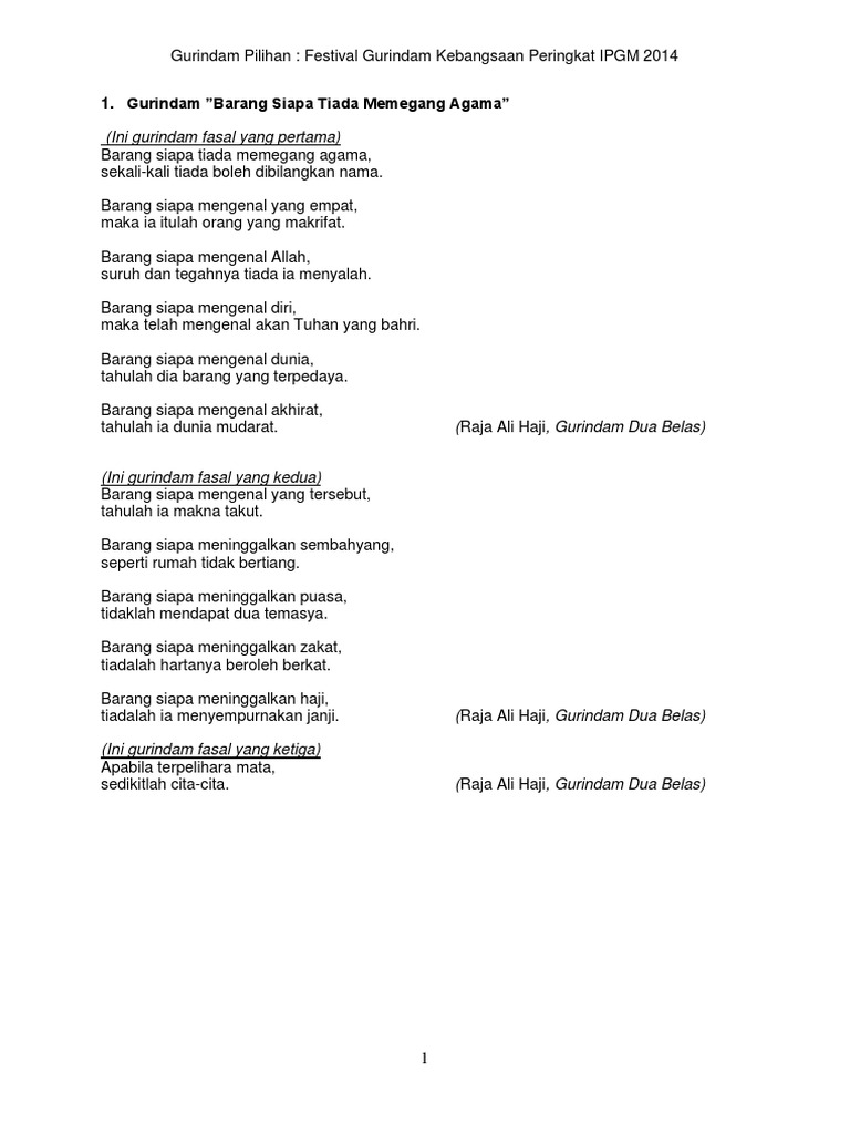 Doc Makna Gurindam Dua Belas Karya Raja Ali Haji Phe Cass Academia Edu