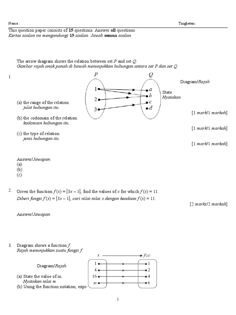 1 5 1 Fungsi Spm Praktis Kertas 1 Soalan Pendek Matematik Tambahan Spm