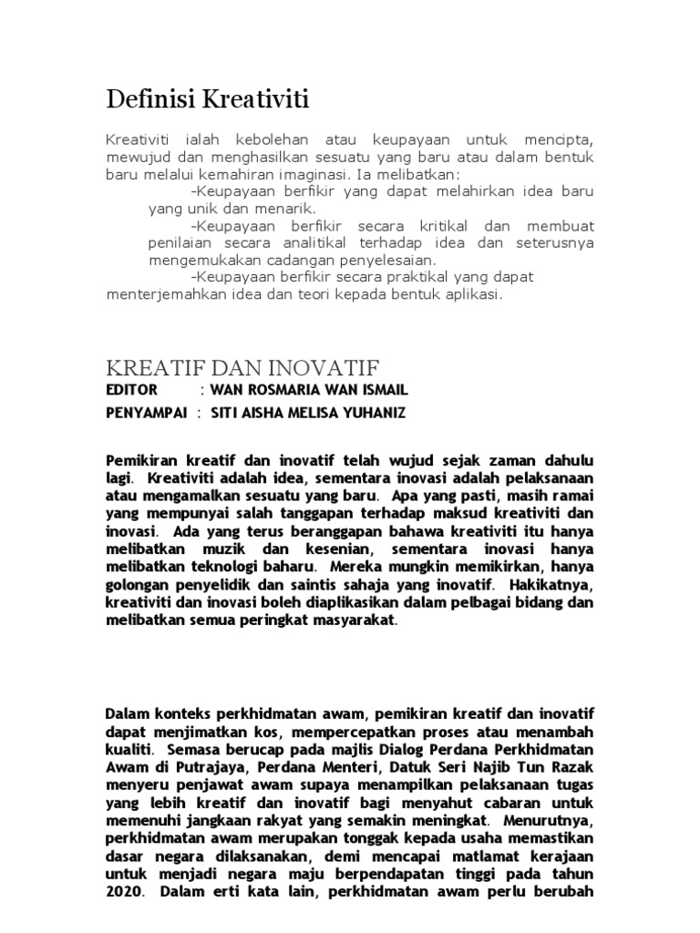 Apakah Yang Dimaksudkan Dengan Kreativiti Dan Inovasi Inovasi Motivasi Dan Teknologi