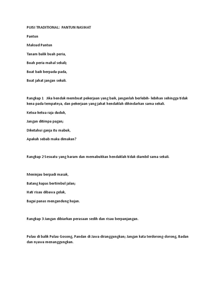 Puisi Traditional Pantun Nasihat