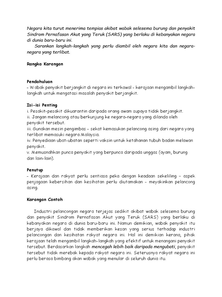 Negara Kita Turut Menerima Tempias Akibat Wabak Selesema Burung Dan Penyakit Sindrom Pernafasan Akut Yang Teruk