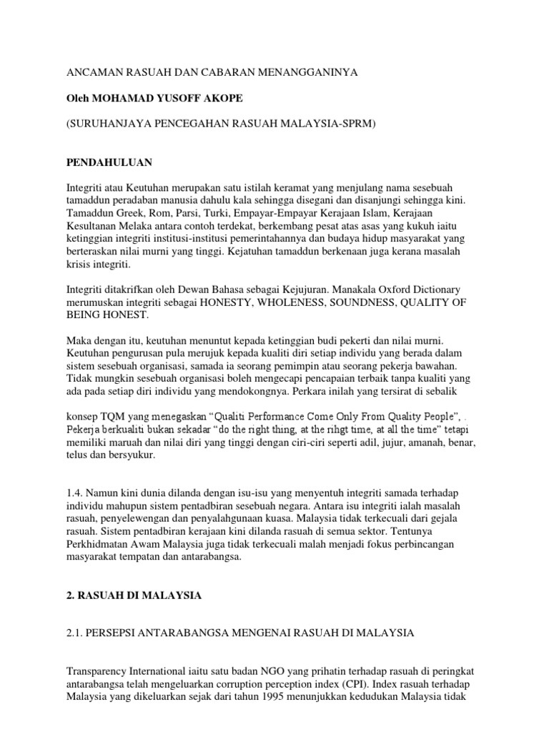 Ancaman Rasuah Dan Cabaran Menangganinya