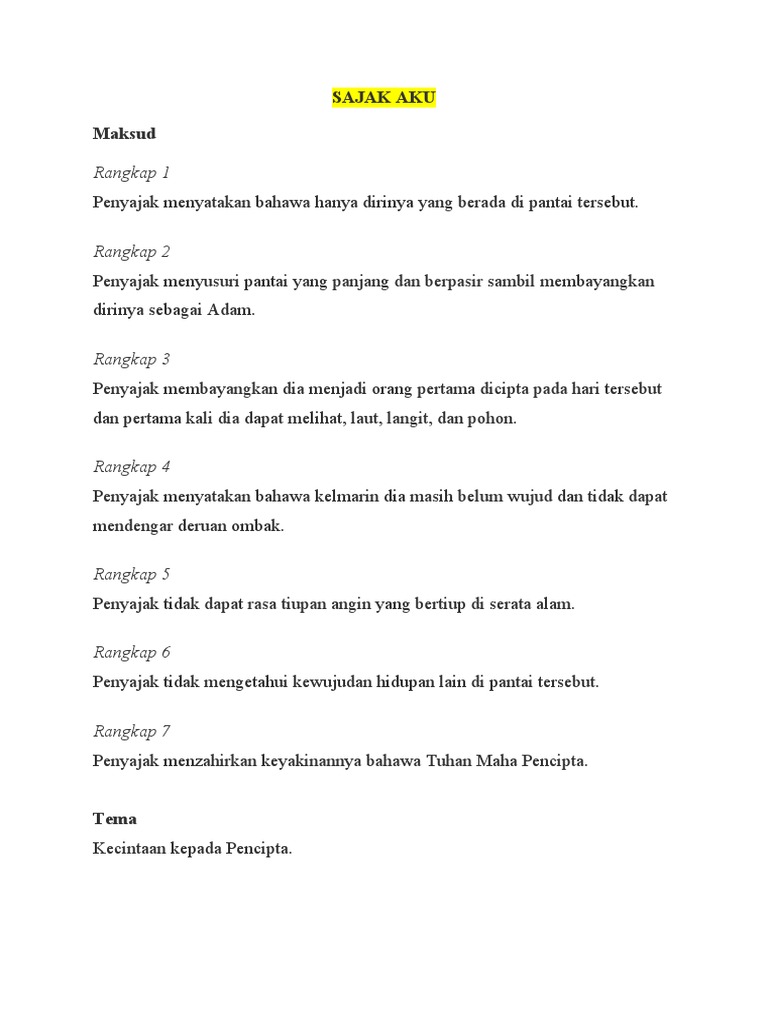 Sajak Tingkatan 4 Aku Membaca Lagi