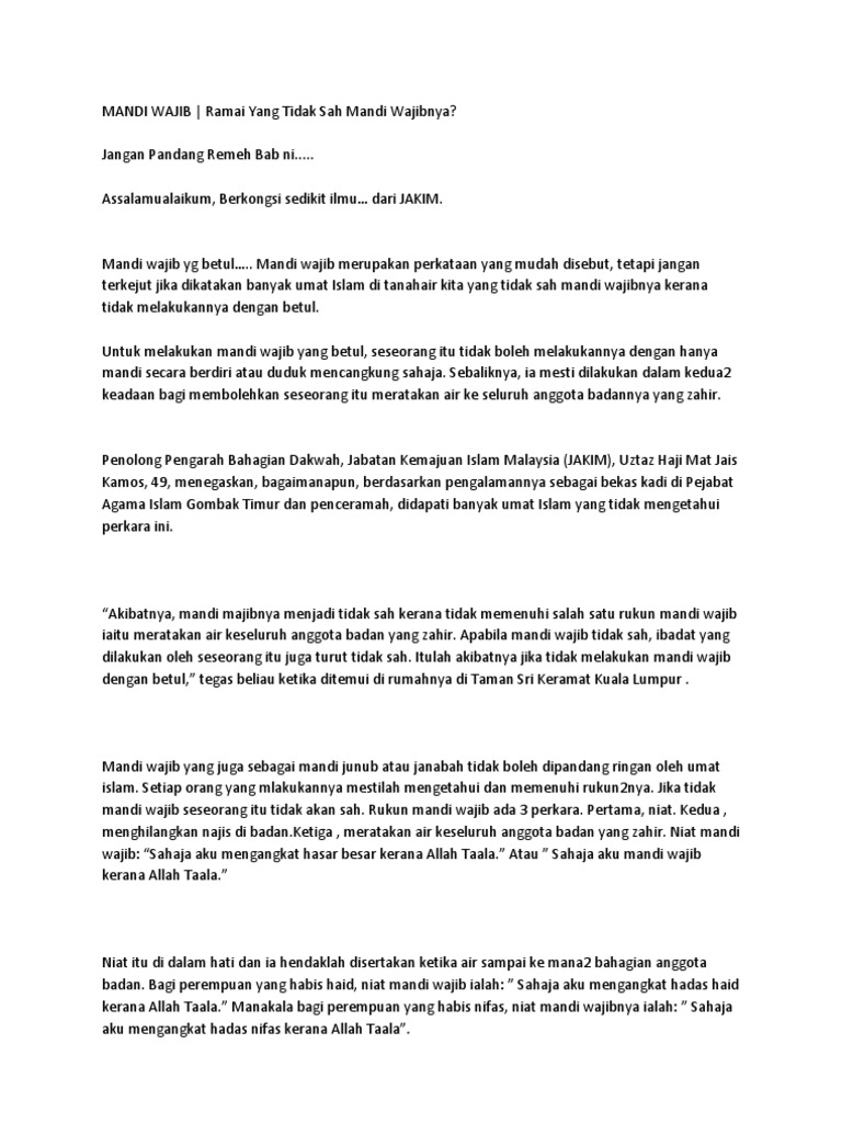 Mandi Wajib Ramai Yang Tidak Sah Mandi Wajibnya Gempak Beb