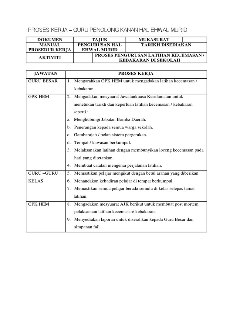 Manual Prosedur Kerja Penolong Kanan Hal Ehwal Murid