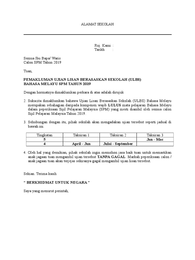 Surat Pemakluman Ibu Bapa Ulbs
