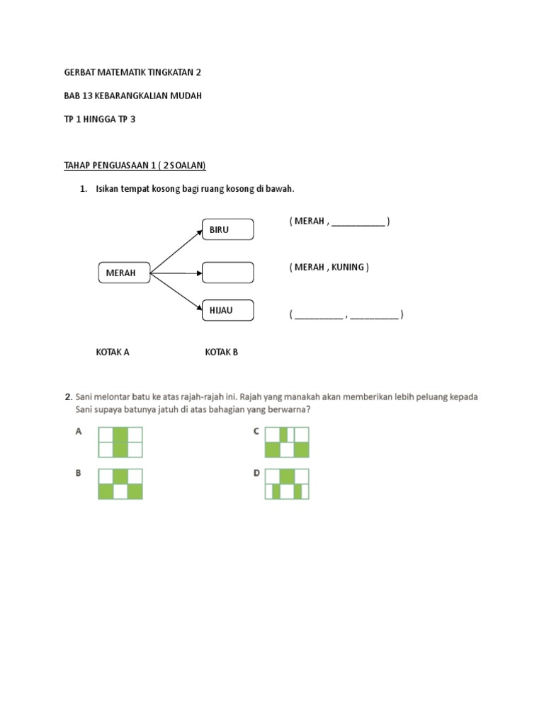 Matematik Tingkatan 2 Kebarangkalian Mudah