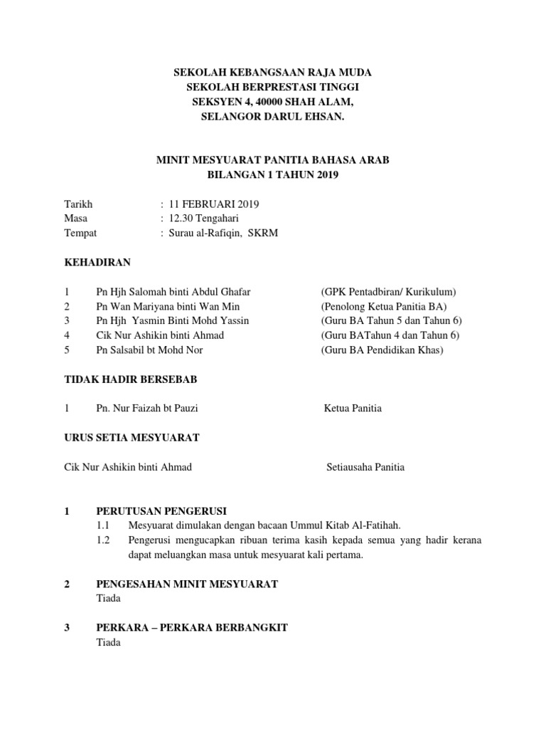 Minit Mesyuarat Sejarah 2019 Pages 1 4 Text Version Anyflip
