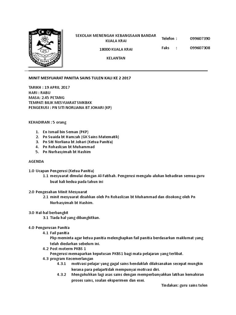 Minit Mesyuarat Panitia Sains Kali Pertama Smk Bandar Kuala Krai 2017