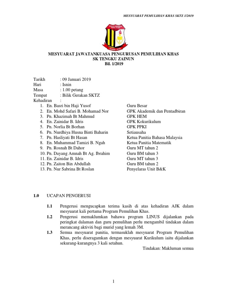 Minit Mesyuarat Kurikulum Bil 1 2019 Pages 1 9 Text Version Anyflip