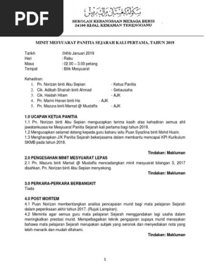Minit Mesyuarat Panitia Sejarah Kali Pertama 2015 Sekolah Kebangsaan Kuala Bok Baram Tarikh 03 Febuari 2015 Selasa M Download Resume Resume Bambam
