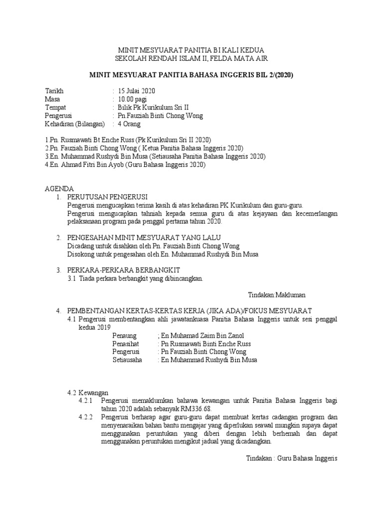 Minit Mesyuarat Bil2 2020 Pages 1 7 Text Version Anyflip