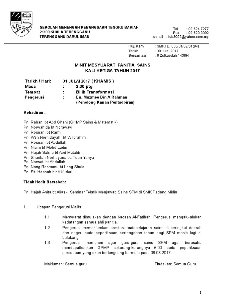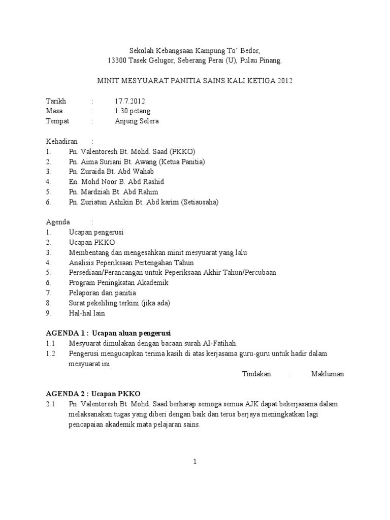 Minit Mesyuarat Panitia Sains Bil1 2019 Pages 1 7 Text Version Anyflip