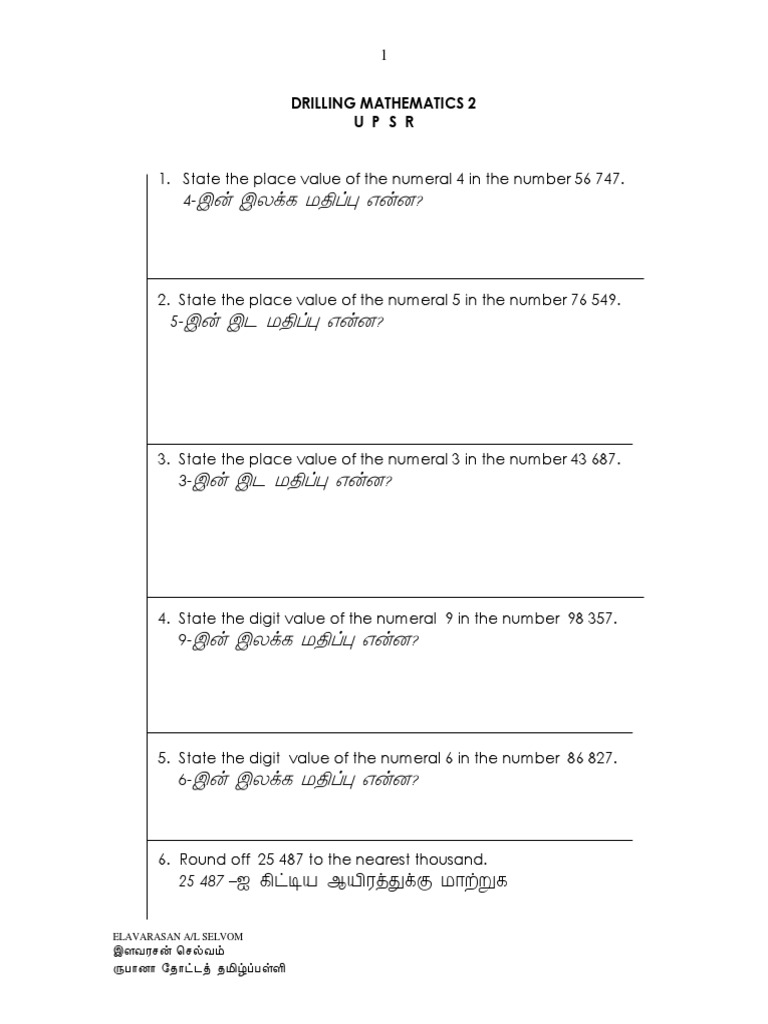 Upsr Maths Drill Tamil Fraction Mathematics Arithmetic