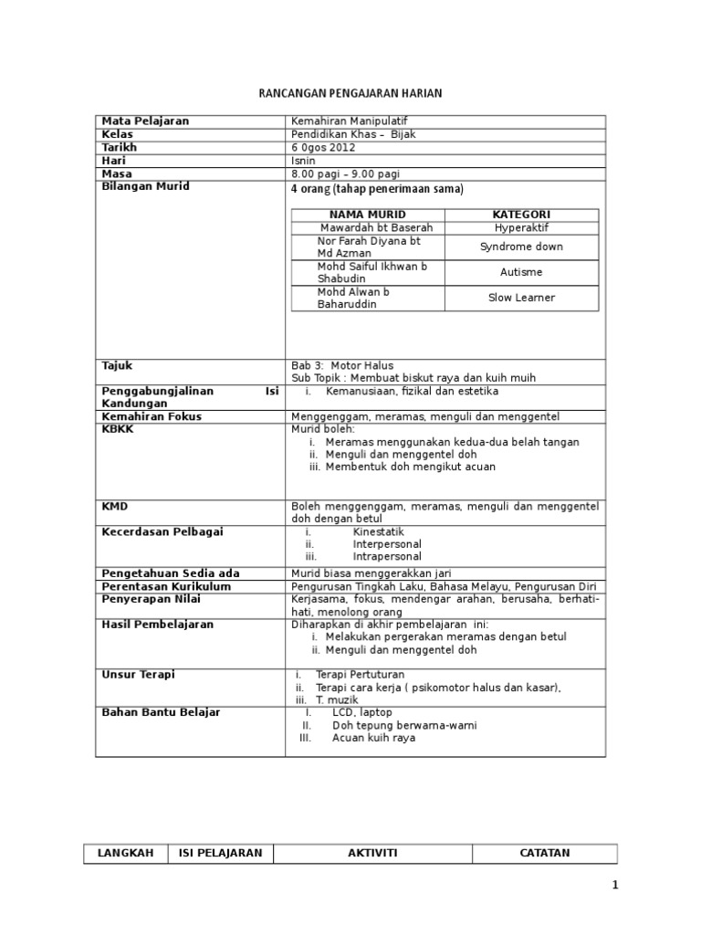 Log masuk untuk mencetak. Kalau tak faham boleh je tanya. Rancangan pengajaran tahunan kemahiran manipulatif kssr pk tahun 1 2019 minggu tajuk standard kandungan standard pembelajaran aktiviti catatan minggu 1 1 0 motor kasar 1 1 pergerakanasas bahagian kepala 1 1 1 menolehke arah kiri dan kanan 1. Sekolah pendidikan khas spk.